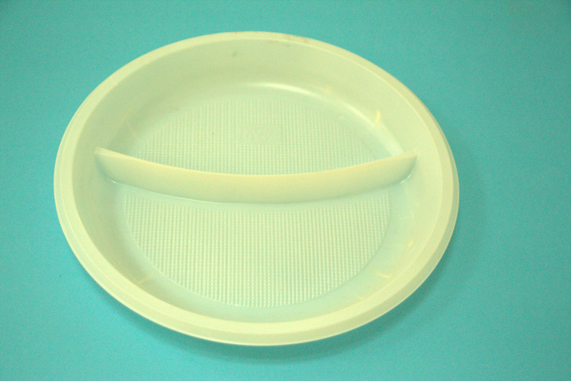 —Тарелка пластиковая Д 205,220 мм белая 2-х секц / 100 / 1400